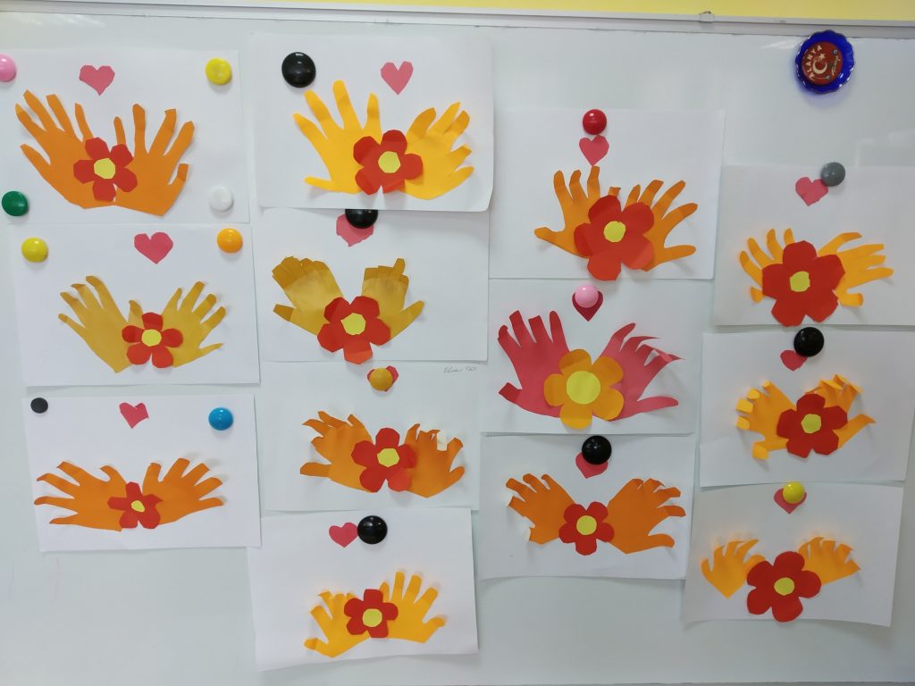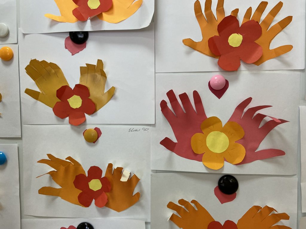 Вниманию ребят был представлен видео ролик и презентация, с историей зарождения данного дня, фото- и виде-поздравлениями пожилых людей. Дети прослушали трогательные и нежные стихи о бабушках и дедушках. Эти моменты вызвали эмоциональный отклик в душе ребят. Каждый из них захотел поделиться о своих близких пожилых людях, рассказать истории из их жизни. После беседы с детьми, мы решили подарить свое внимание бабушкам и дедушкам в этот день, сделав аппликацию. Для этого каждый ребенок обвел свои ручки и вложил в них цветок, символизируя свое внимание и заботу, и сердечко, показывая свою любовь бабушкам и дедушкам.