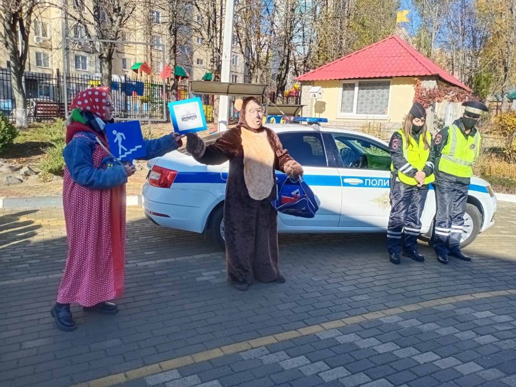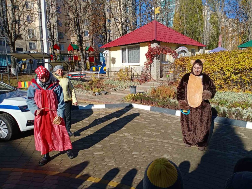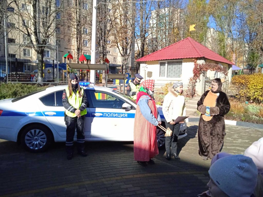 В ходе развлечения по мотивам сказки «Маша и Медведь» ребята повторяли правила дорожного движения, наблюдая как «Маша» их по незнанию нарушала. Вместе с «Медведем» они учили «Машу» правильно себя вести на проезжей части- как переходить дорогу, как правильно понимать сигналы светофора. «Маша» была не только незнакома с правилами поведения пешехода, но и пассажира. Когда «Медведь» посадил ее с собой в машину, «Маша» вела себя шумно, беспокойно и все время его отвлекала. Инспектор ДПС Андреев В.А. рассказал «Маше» и ребятам, как должны вести себя пассажиры в транспортном средстве, а также дети сами указали «Маше», что она должна обязательно находится в детском кресле.