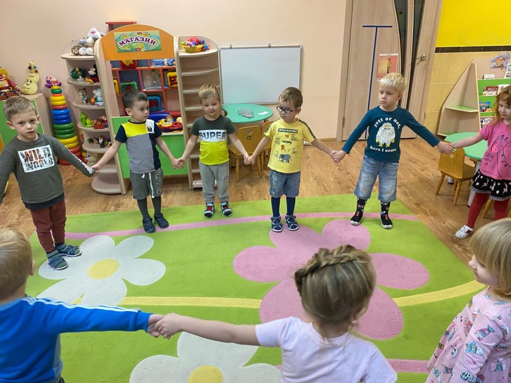 Ребята играли в игру «Крепко за руки возьмемся, будем мы едины, крепко