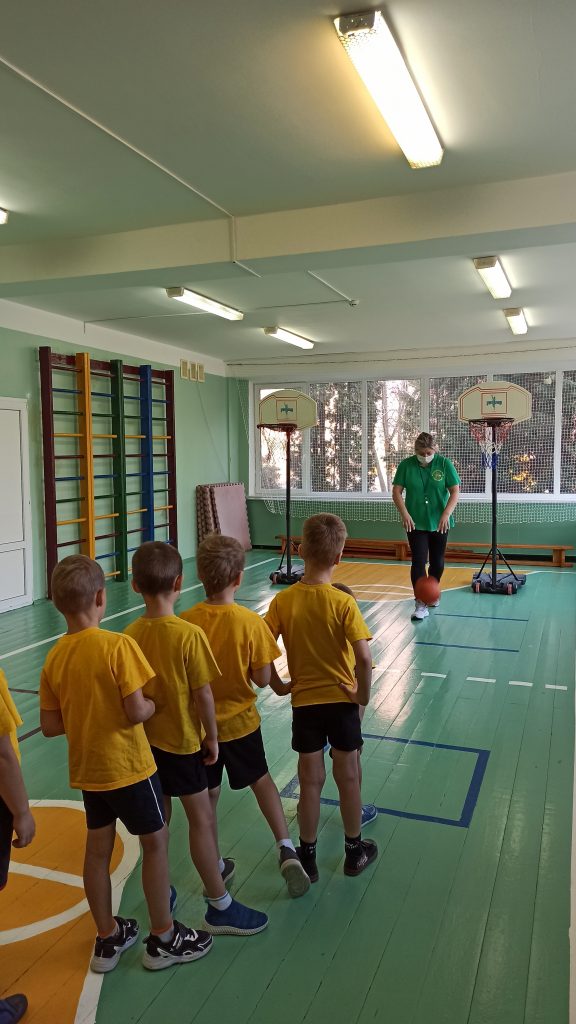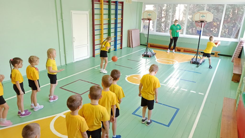 Цель занятия: упражнять в отбивании мяча на месте правой и левой рукой; перебрасывание мяча двумя руками от груди, из-за головы; выполнение правильных бросков в корзину с места двумя руками от груди; закрепить теоретические знания о баскетболе; воспитывать желание заниматься спортом.
